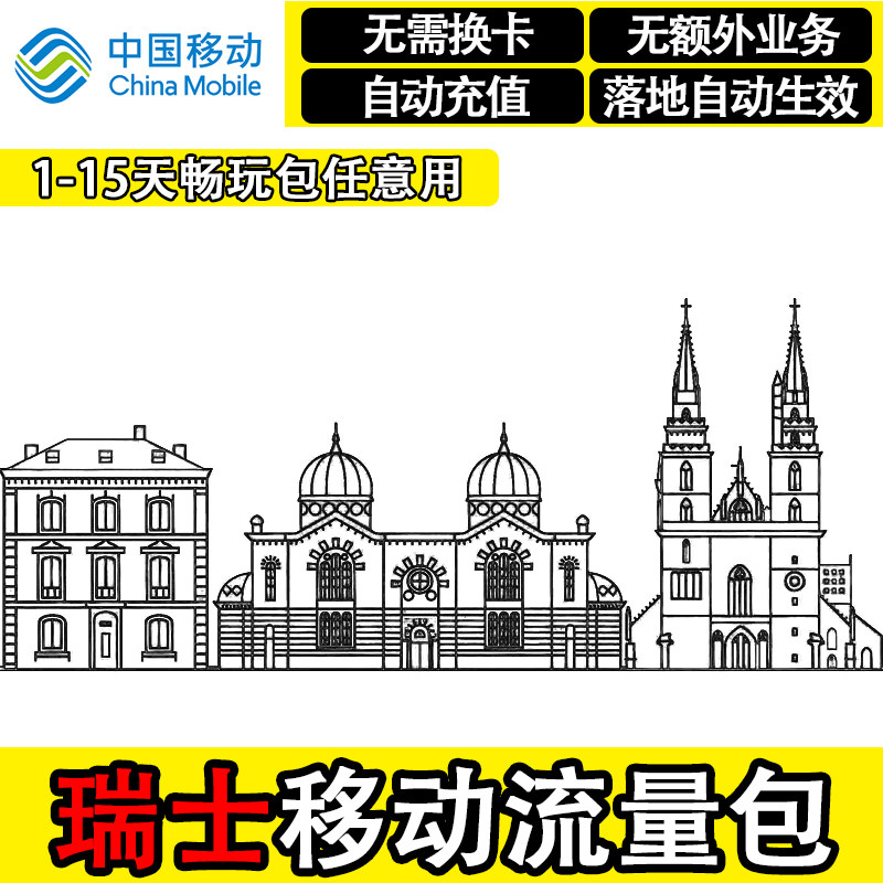 瑞士流量包中国移动4G国际漫游境外上网流量充值飞猪国外无需换卡