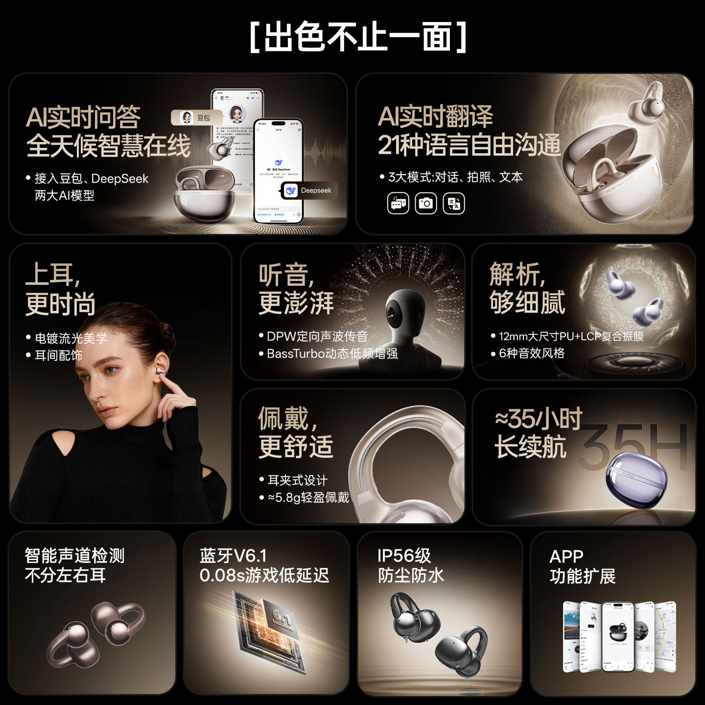 弱水时砂openfeel夹耳式蓝牙耳机挂耳HIFi运动跑步开放式专用耳机