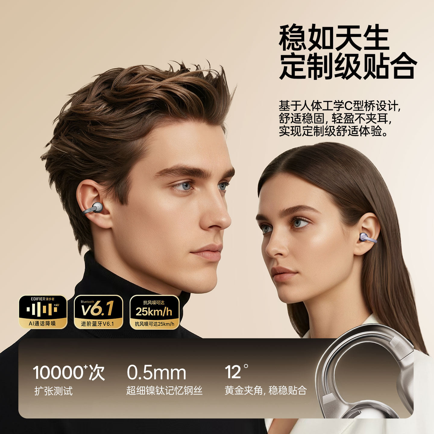 漫步者花再Auro Clip耳夹式耳机2025新款AI蓝牙无线运动跑步专用