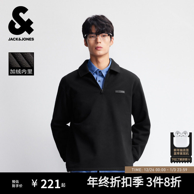 【加绒】杰克琼斯男装25年秋季新款宽松拉链POLO领卫衣外套PU皮标
