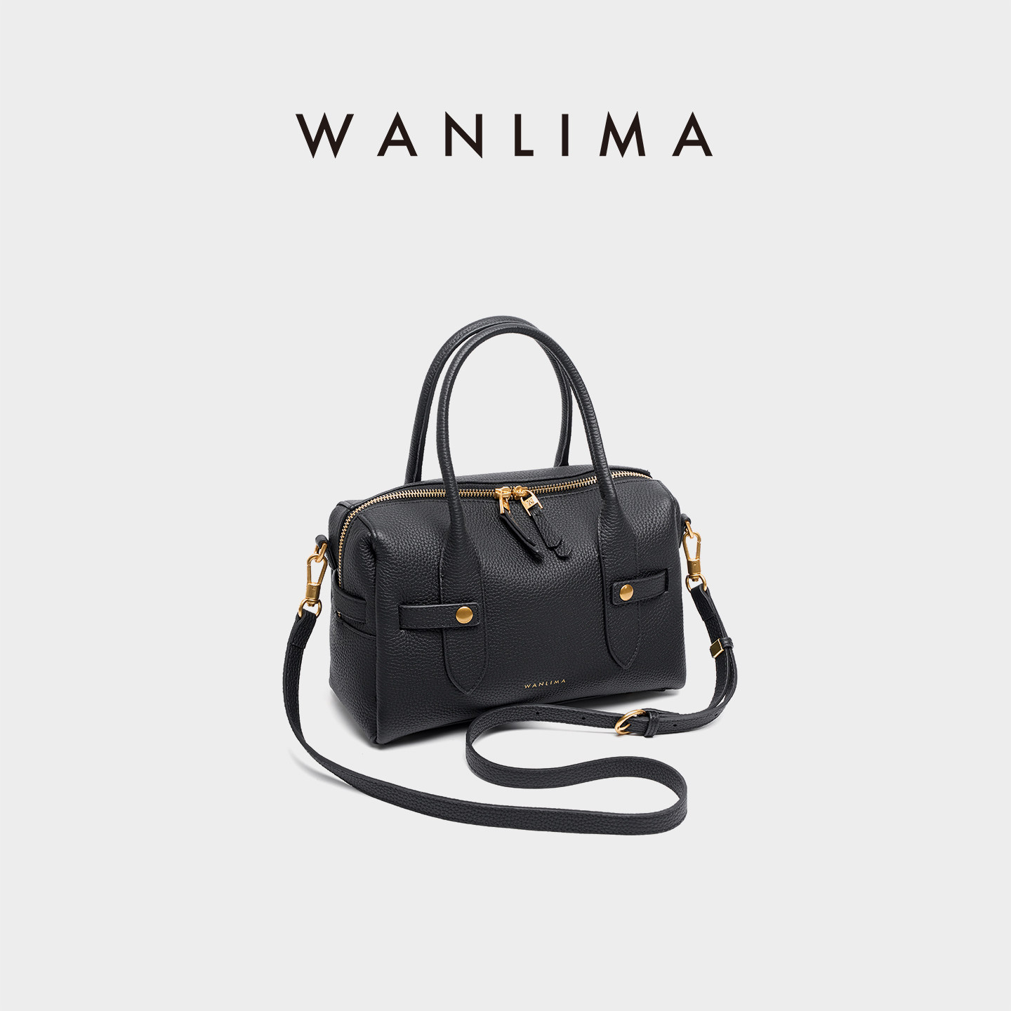 Wanlima/万里马2026新款牛皮保龄球包女包真皮短手柄手提波士顿包