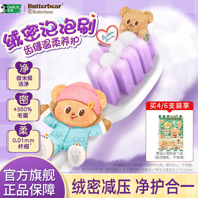 【黄油小熊联名】DARLIE好来黑人密护龈软毛牙刷成人情侣专用正品