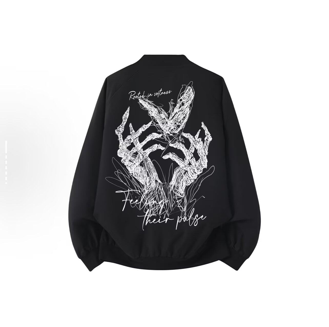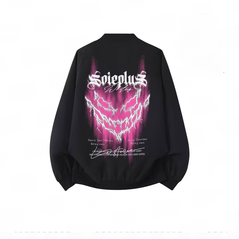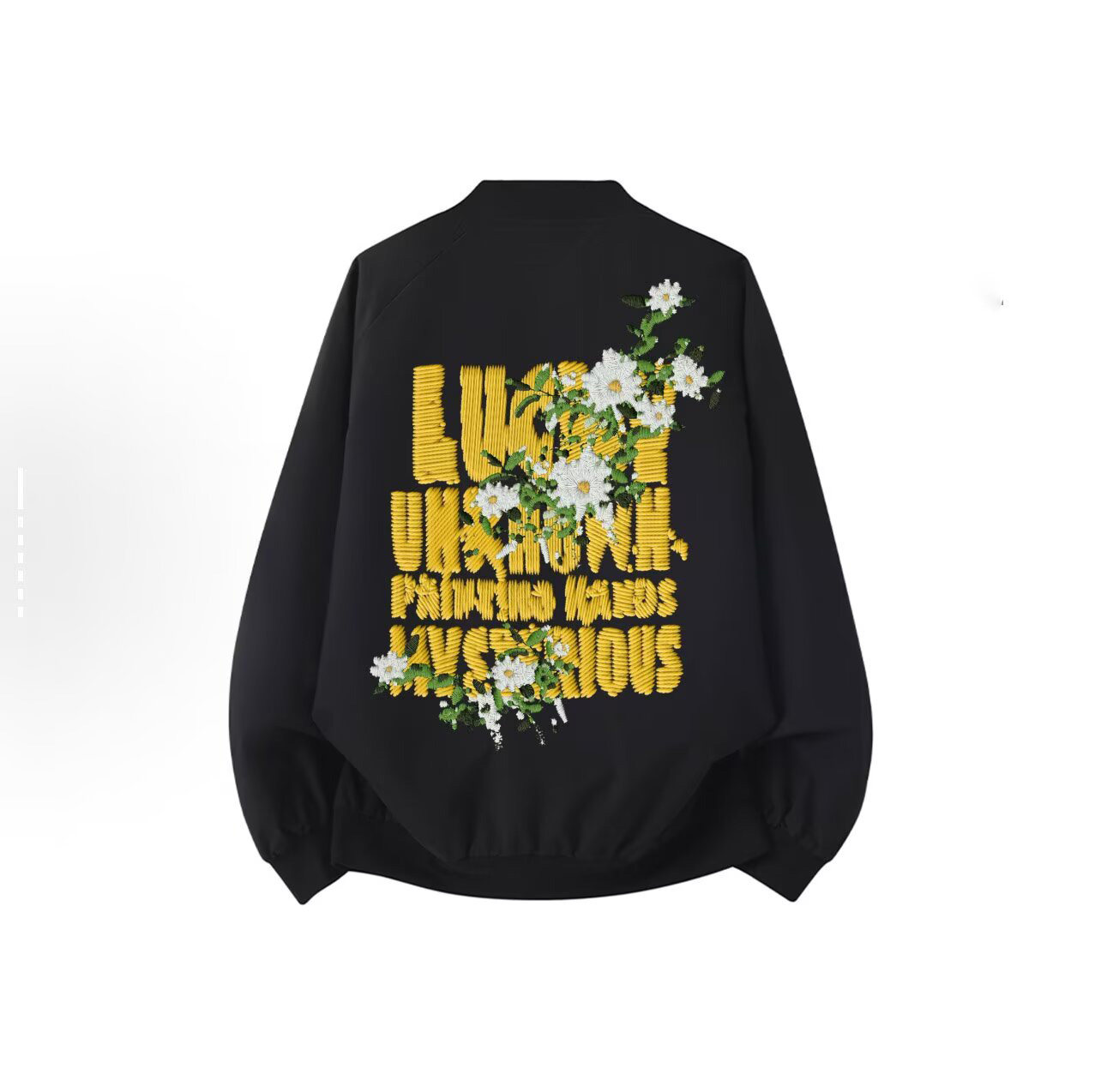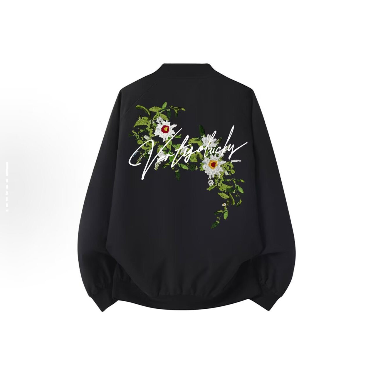 美式高街复古字母植物花卉印花撞色设计感飞行员夹克情侣外套