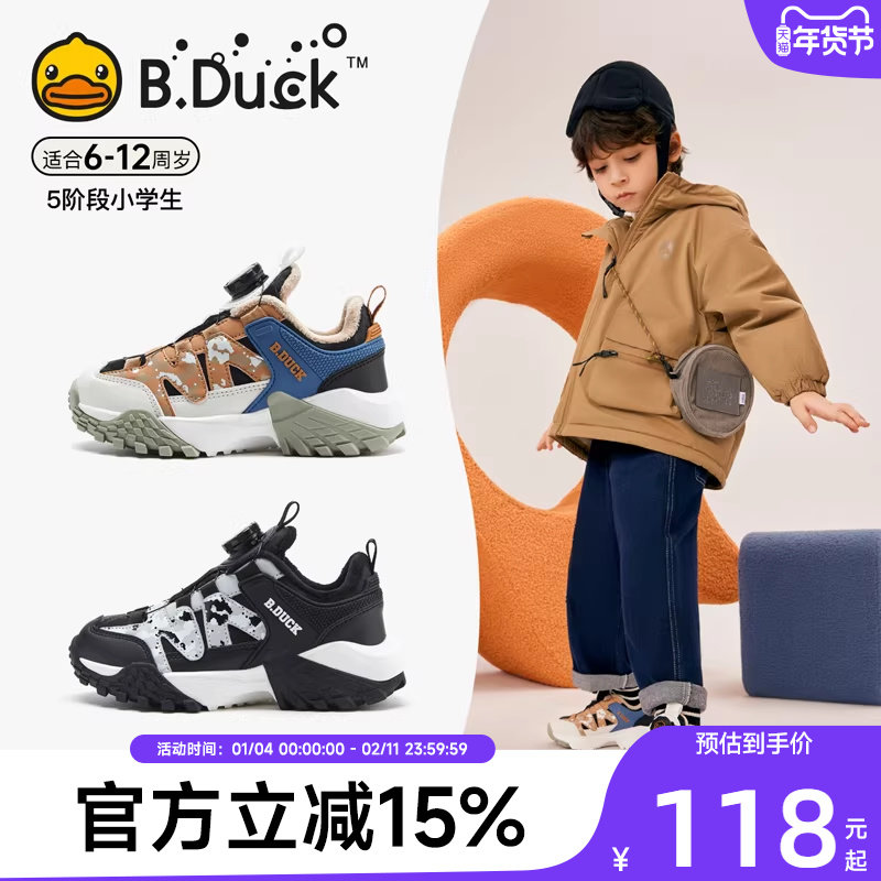 B.Duck小黄鸭童鞋男童运动鞋二棉冬季新款旋转扣儿童棉鞋保暖防滑