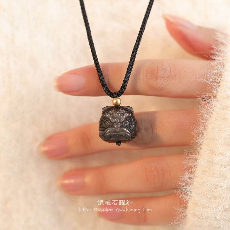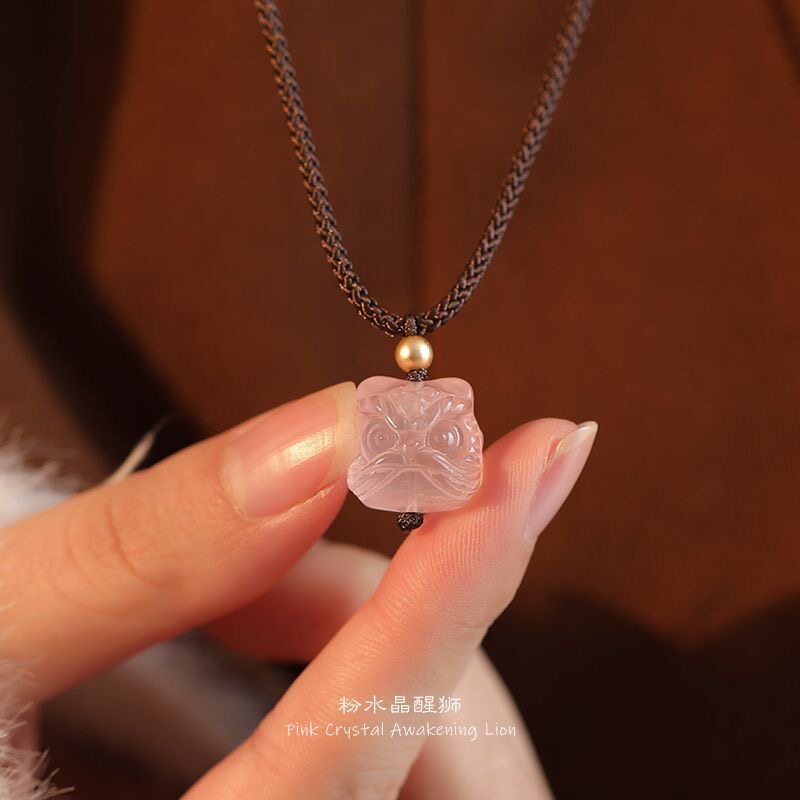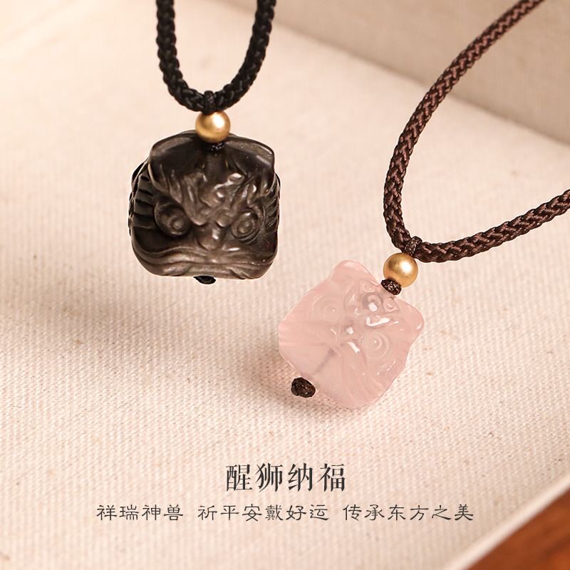【狮来运转】银曜石粉晶醒狮吊坠小众锁骨链女高级黑色编绳项链