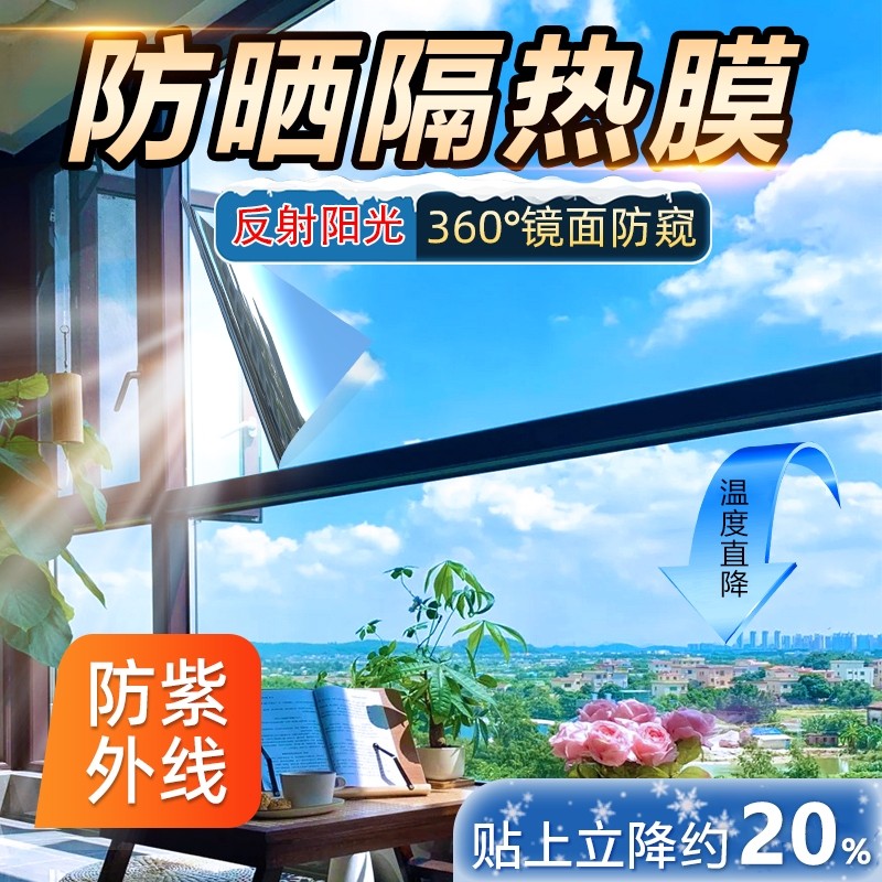 窗户防晒隔热膜玻璃贴纸家用阳光房遮光遮阳阳台防窥单向透视隐私