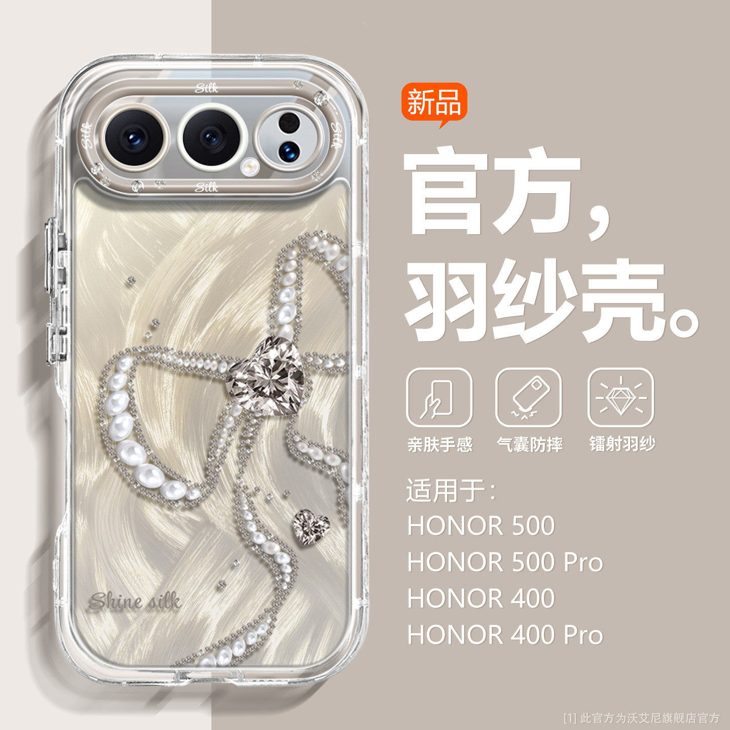 沃艾尼适用于荣耀500pro手机壳潮牌400p蝴蝶结300pro保护套情侣ultra全包镜头200p带挂绳新款100轻奢个性防摔