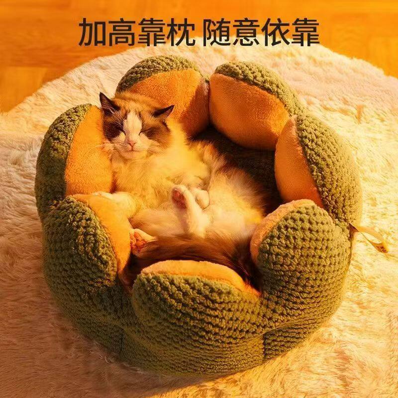 花瓣猫窝冬季保暖加绒狗窝半封闭式四季通用猫咪宠物用品可拆洗