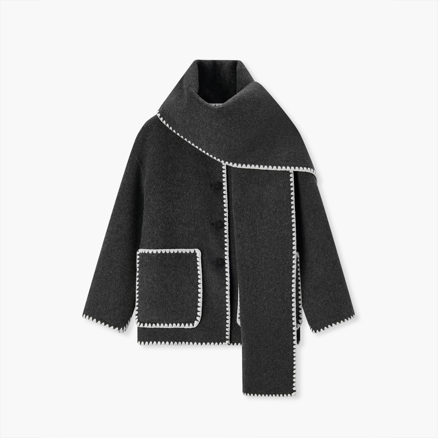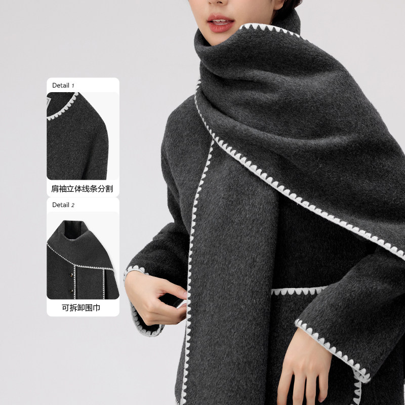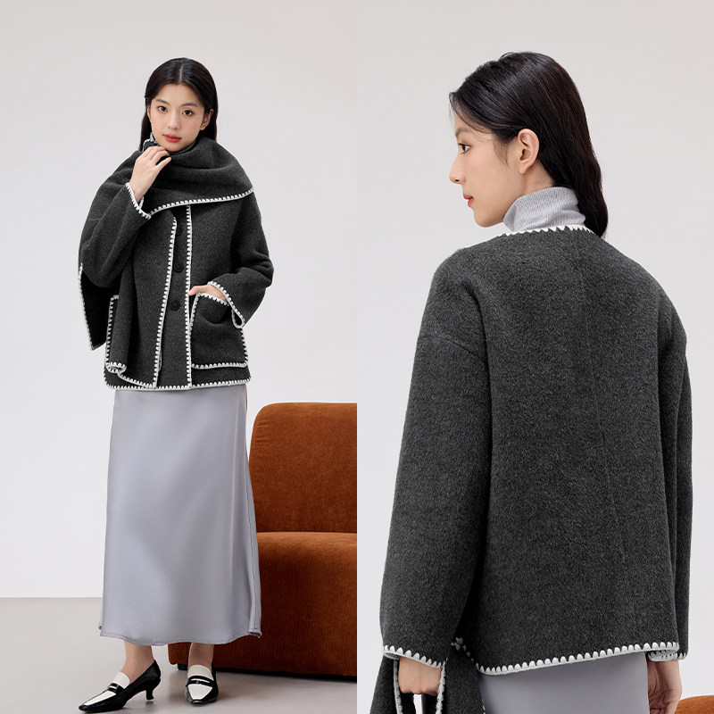 爱居兔小香风双面呢外套女冬季新款带围巾时尚毛呢短外套