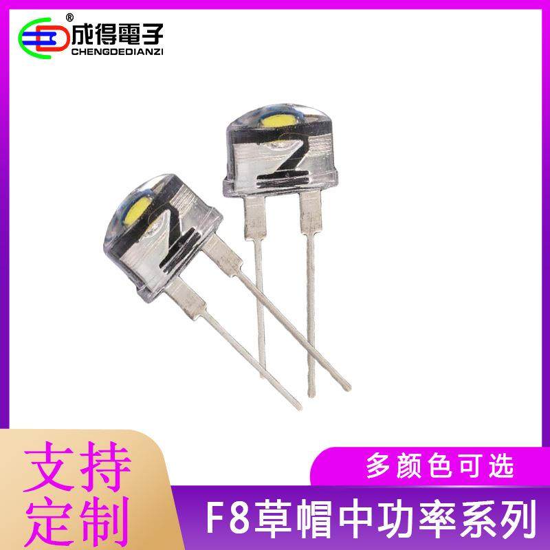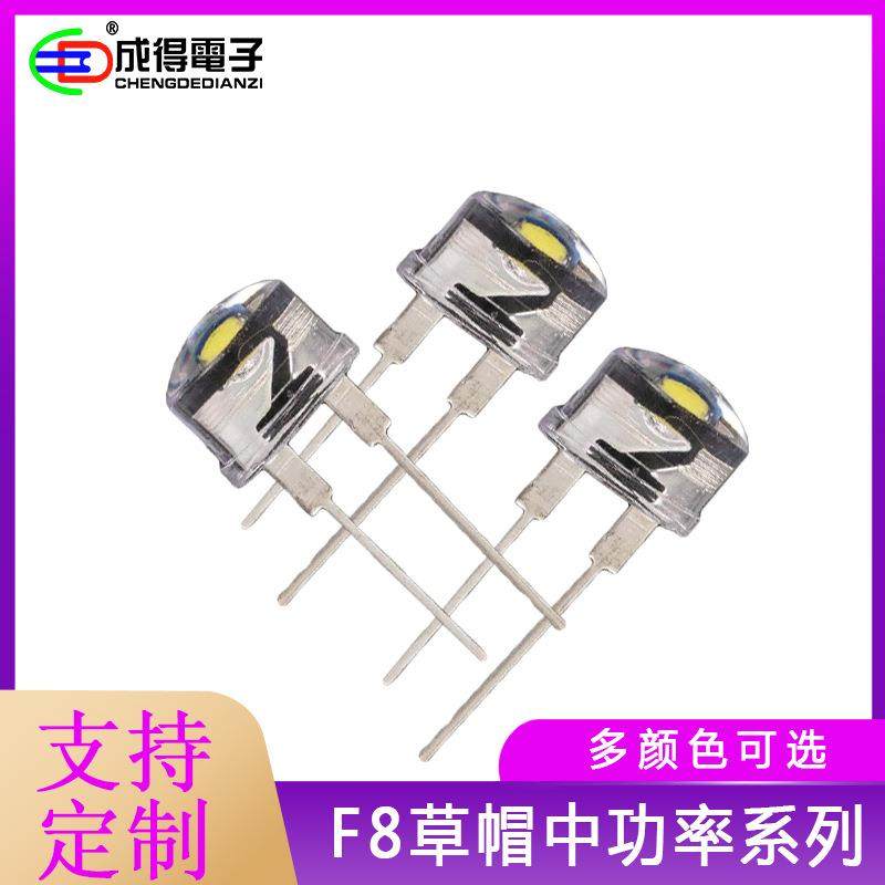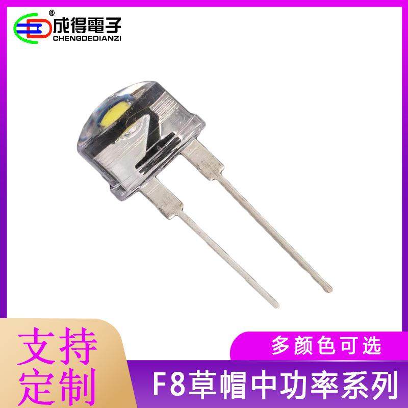 直插F8mm草帽0.5W白灯宽脚0.75W红黄蓝绿LED灯珠照明手电筒灯珠