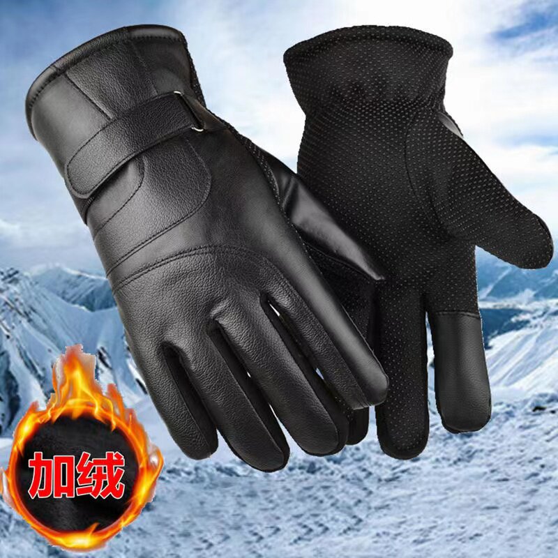 手套滑雪健身冬季中年皮手套骑行电动车冬天加绒加厚保暖加棉薄款