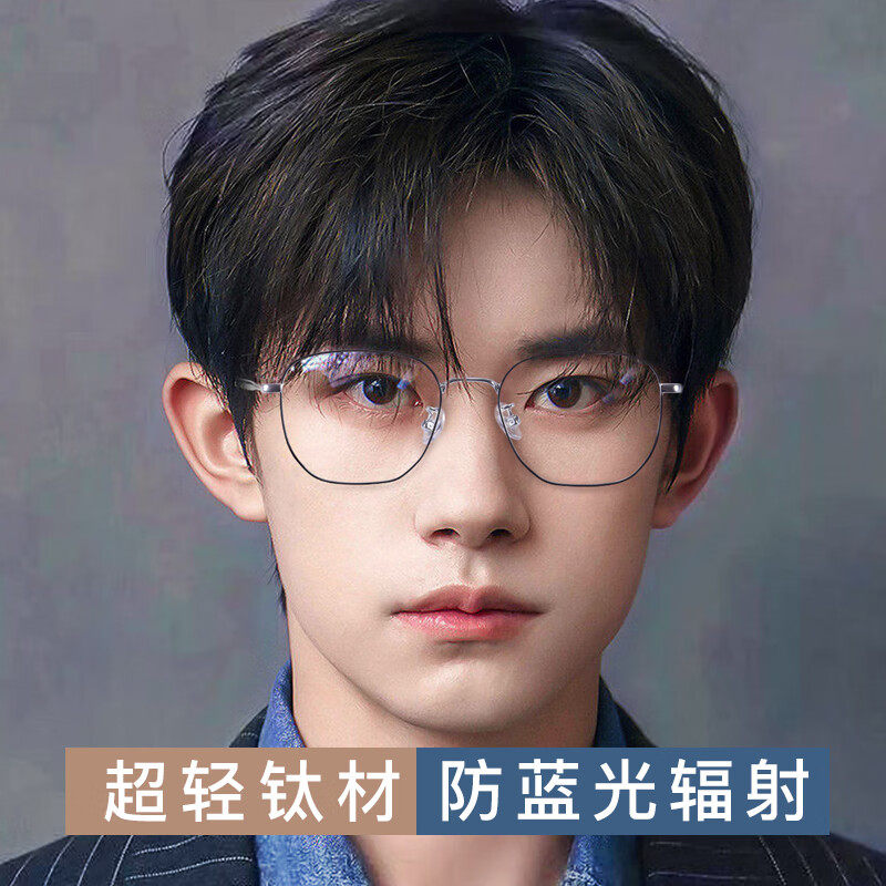 镜片近视眼镜框男超轻纯钛方框近视镜架女防蓝光可配度数散光大框