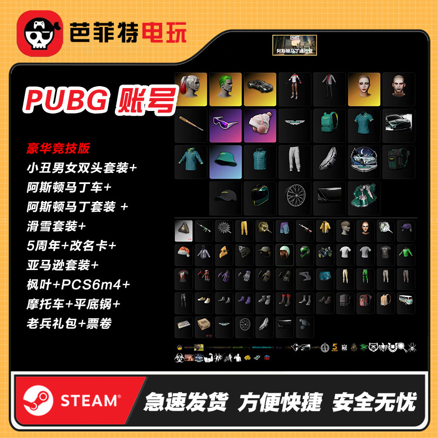 绝地求生PUBG小丑男小丑女礼包吃鸡皮肤STEAM阿斯顿马丁车成品号