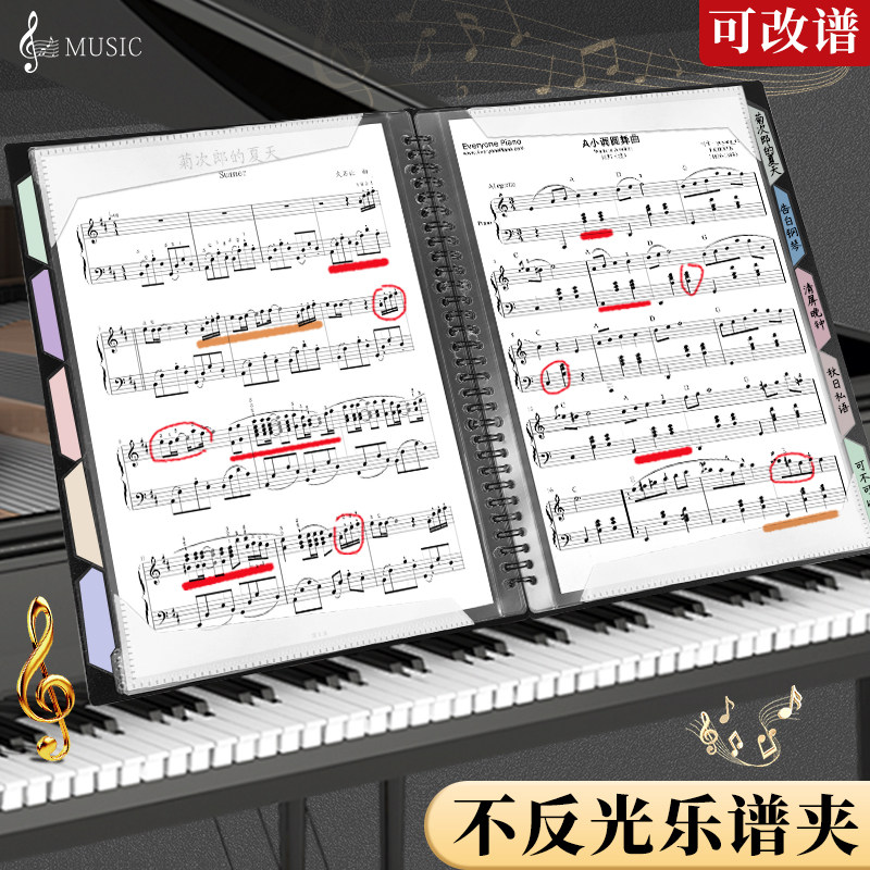 谱夹乐谱夹琴谱夹钢琴专用夹子活页展开式资料册a4文件夹不反光透明插页可改谱可修改音乐合唱歌谱架子鼓曲谱