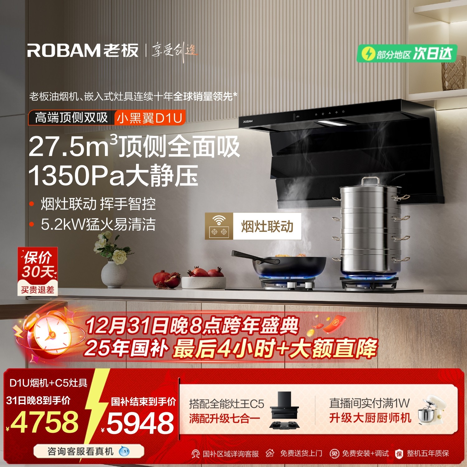 老板小黑翼D1U套系大吸力油烟机燃气灶一套烟灶套装官方旗舰店
