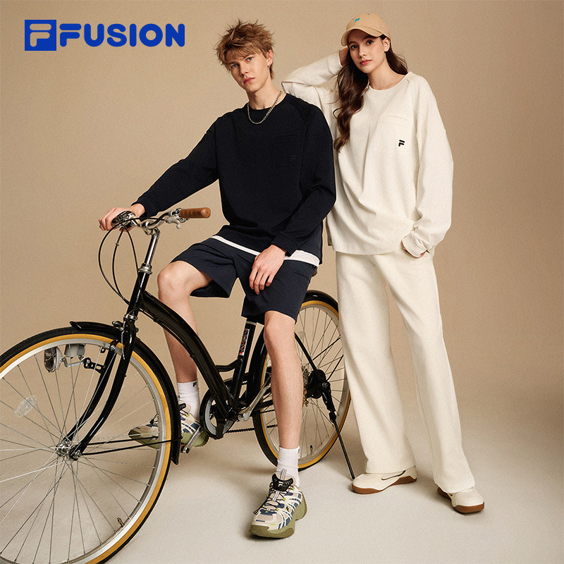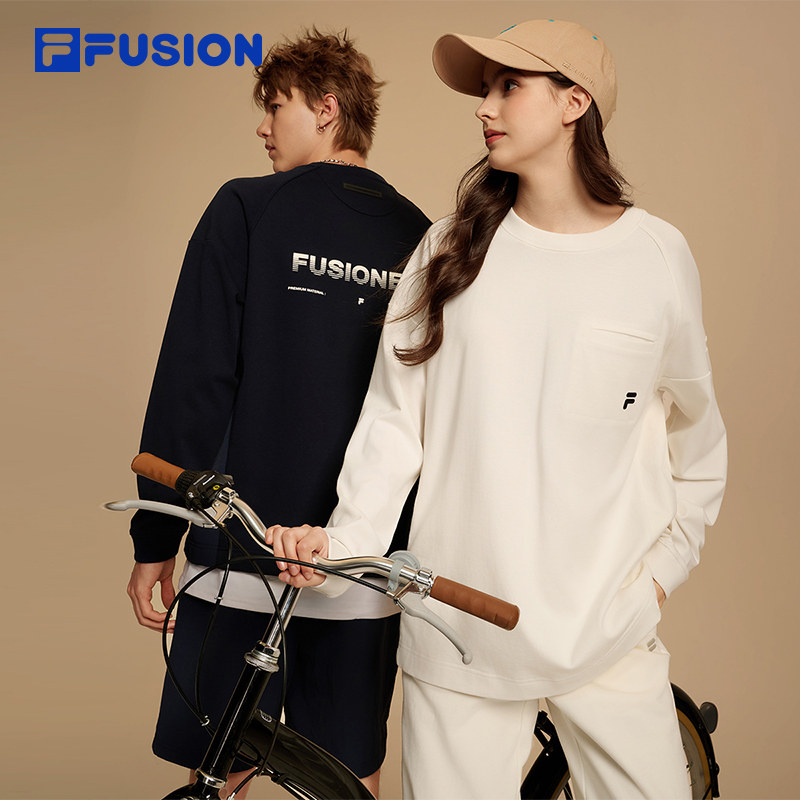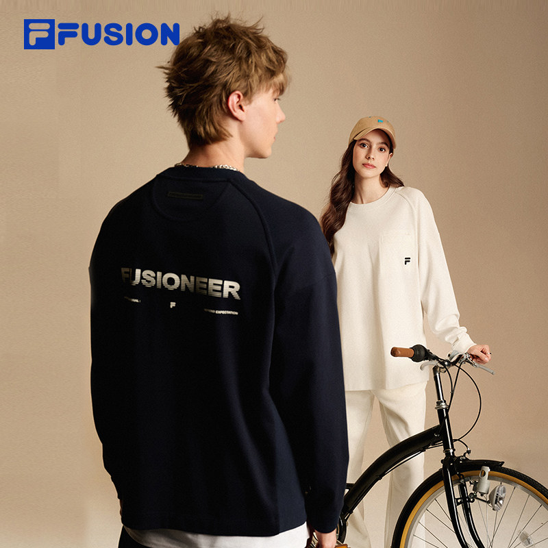 FILA FUSION斐乐潮牌情侣款针织长袖衫2025秋新款时尚休闲宽松长T