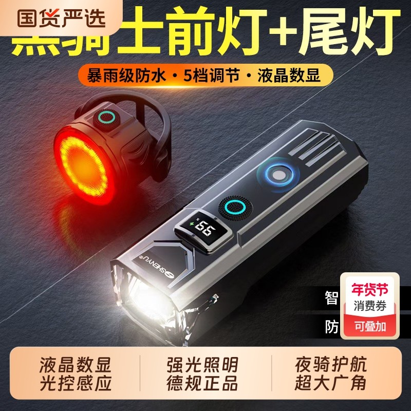 自行车夜骑灯超亮骑行装备尾灯山地车公路车灯单车夜行夜间照明灯