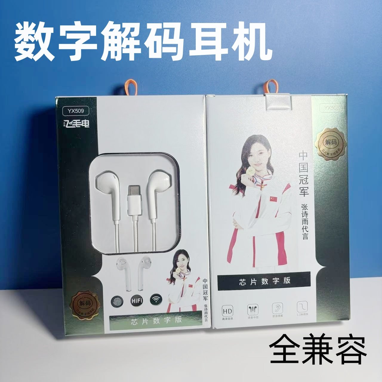 数字解码版全兼容type-c插口 平耳入耳式线控耳机适用于扁口耳机