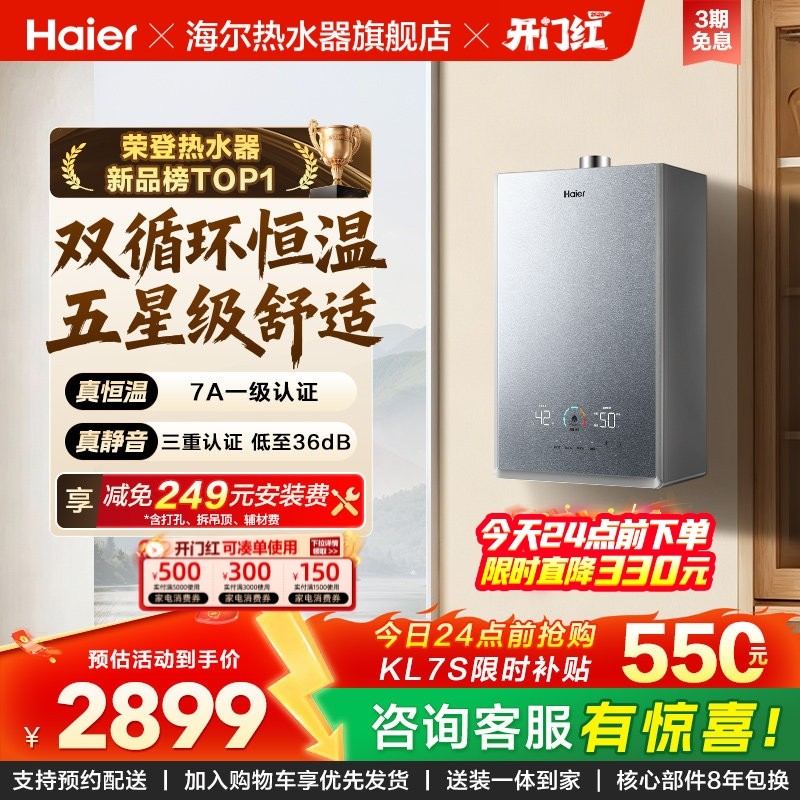 海尔官方燃气热水器家用天然气静音增压双循环水伺服恒温16升KL7S