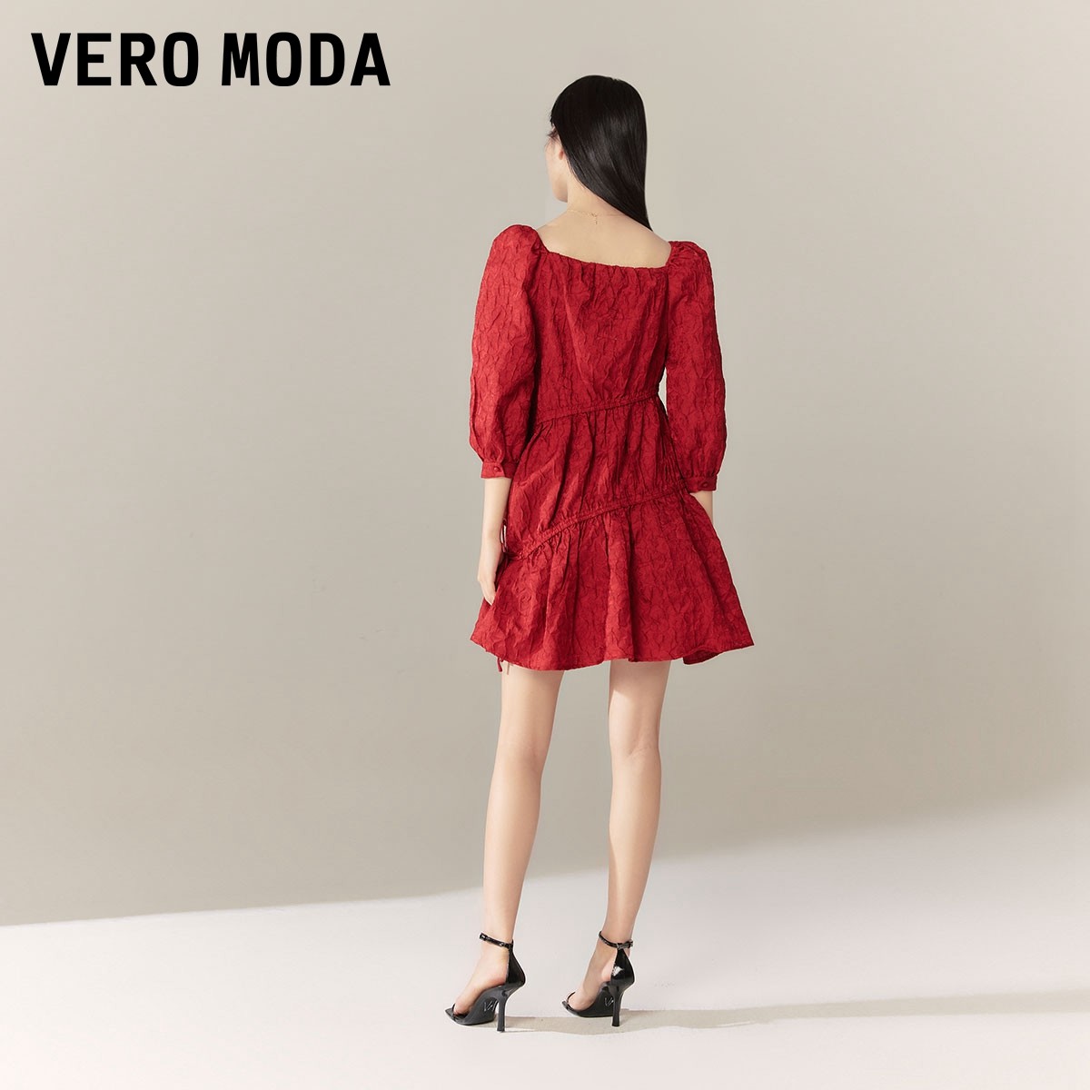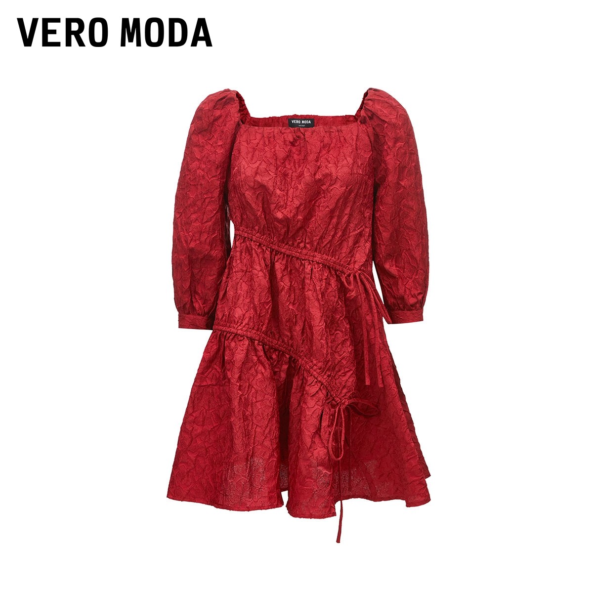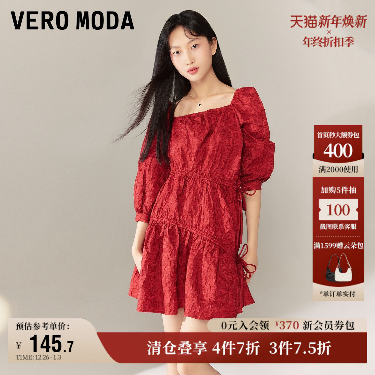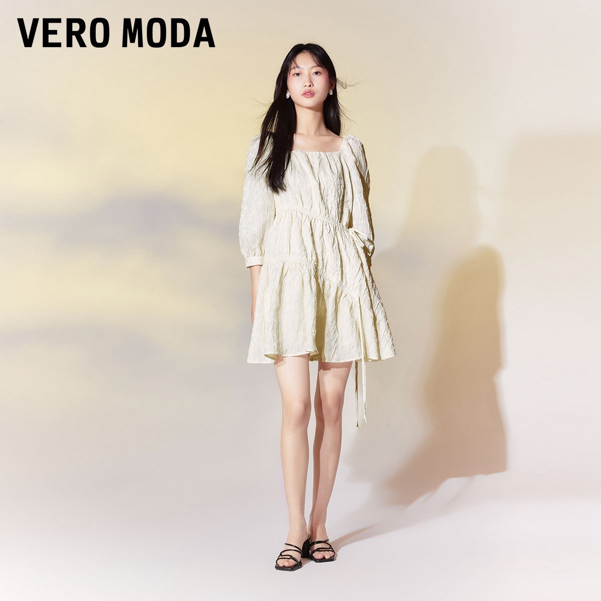 Vero Moda奥莱连衣裙子秋季清仓肌理感抽绳泡泡袖宽松娃娃裙女