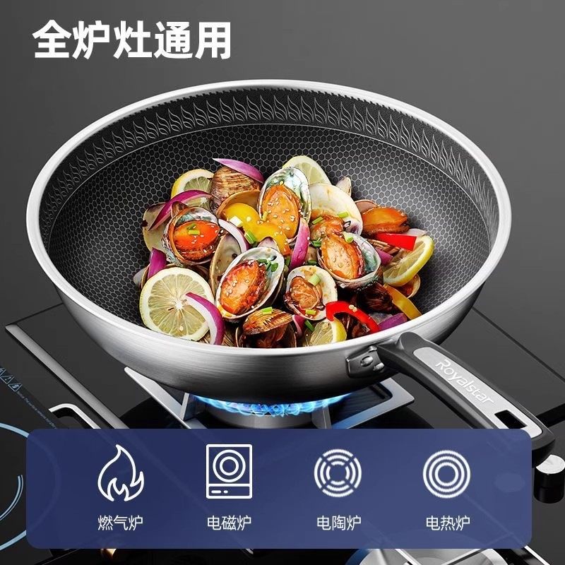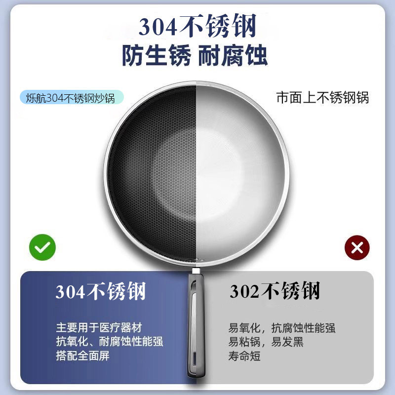烁航不粘锅炒锅家用炒菜锅无涂层电磁炉煤气灶通用304不锈钢锅具
