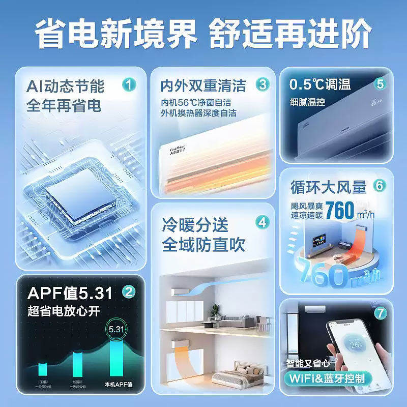 美的空调酷省电二代大1.5匹1匹一级能效变频冷暖家用挂机官方正品