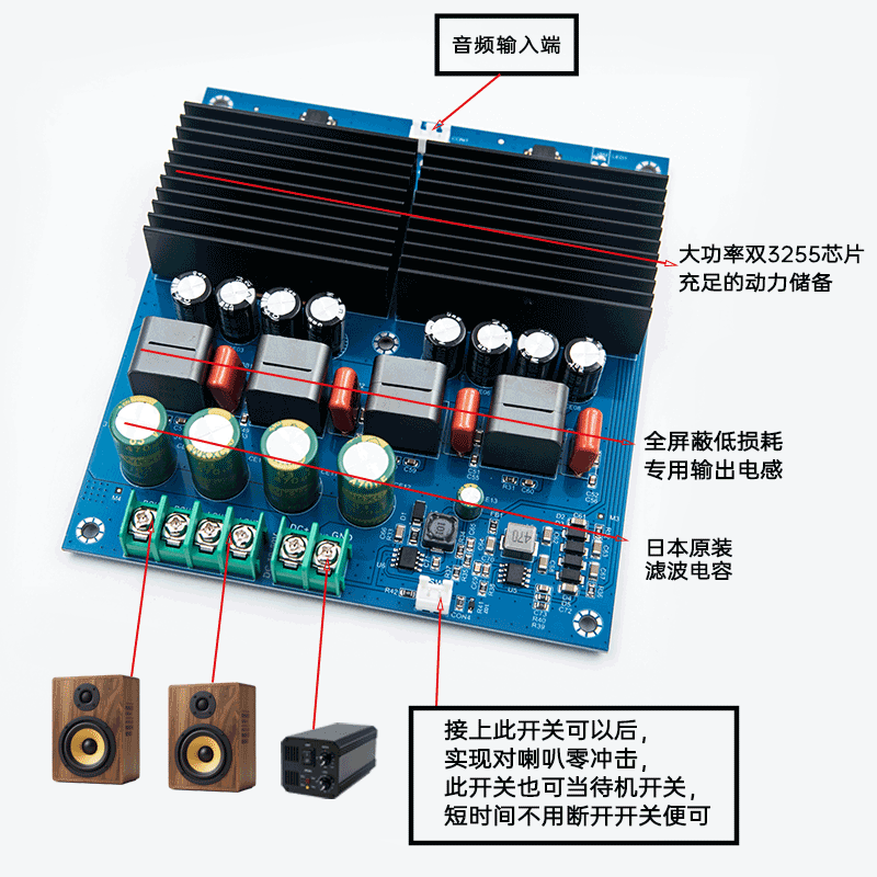 双TPA3255HIFI发烧大功率功放板双声道600W+600W立体声