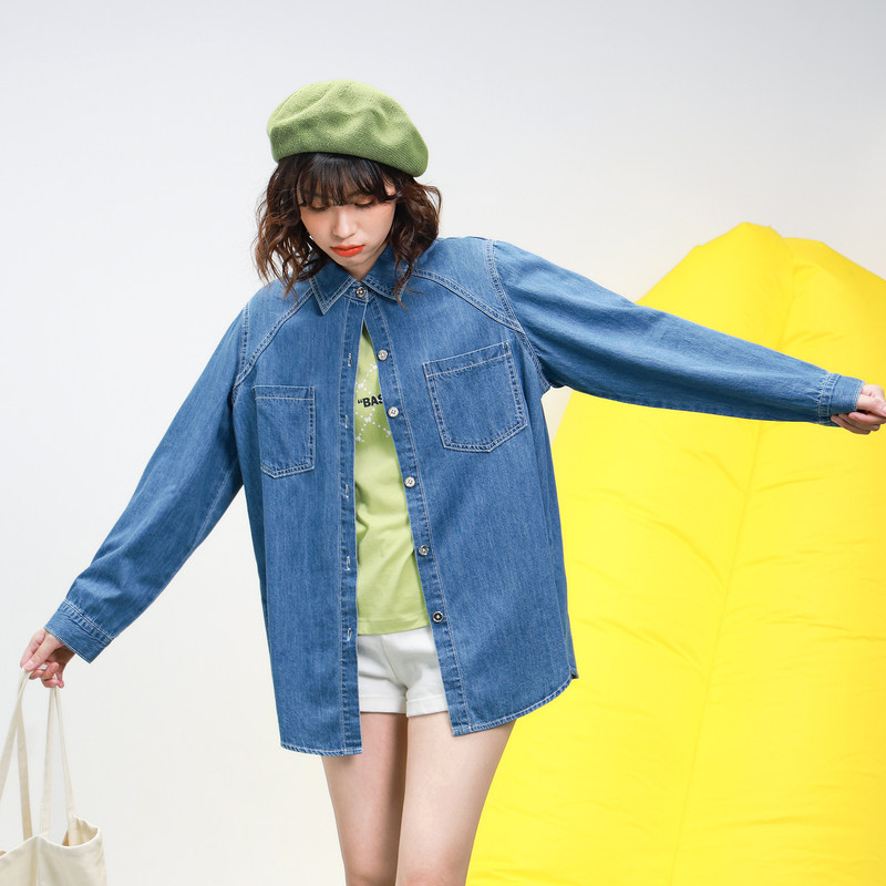 LT真维斯衬衫女装春秋季牛仔衬衣宽松时尚韩版通勤上衣翻领外套潮