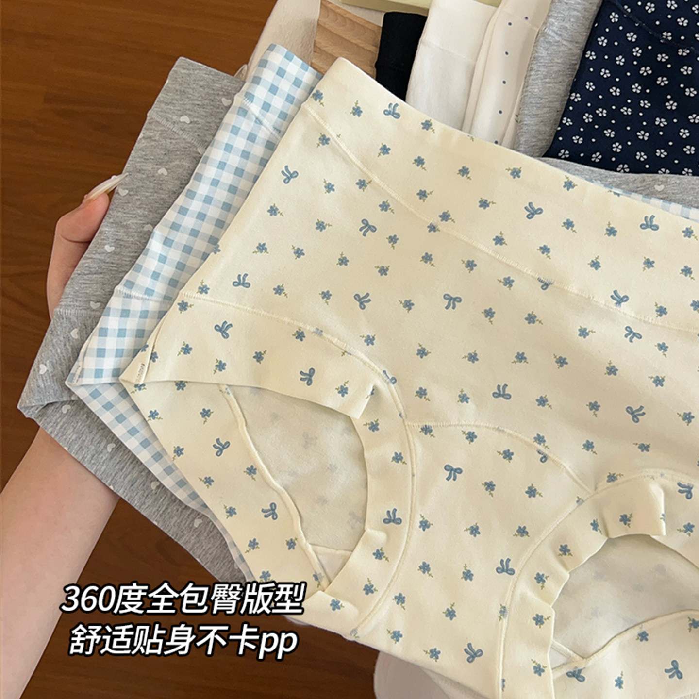 碎花四角女士平角内裤3条装女生微收腹纯棉10A抑菌加长裆无痕大码