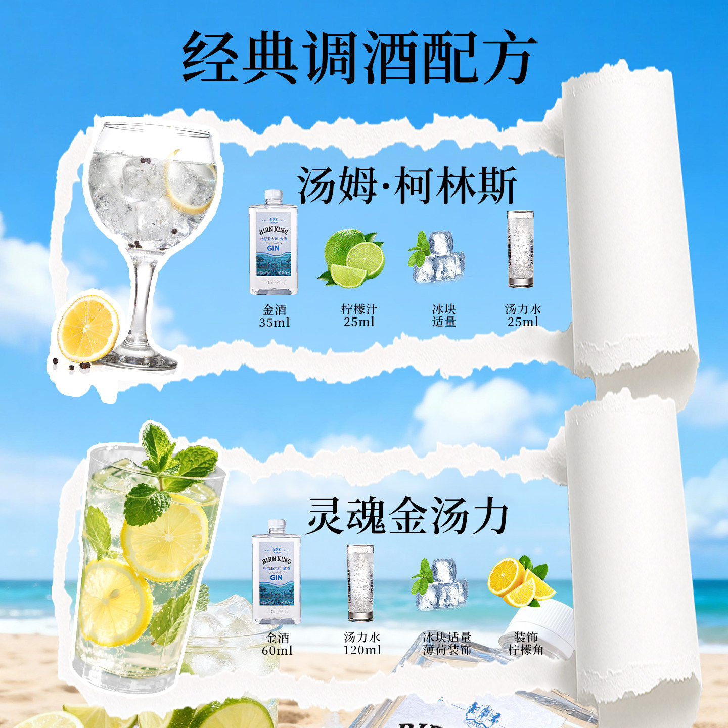 金酒杜松子酒长岛冰茶基酒金汤力酒鸡尾酒调酒烈酒洋酒700ml