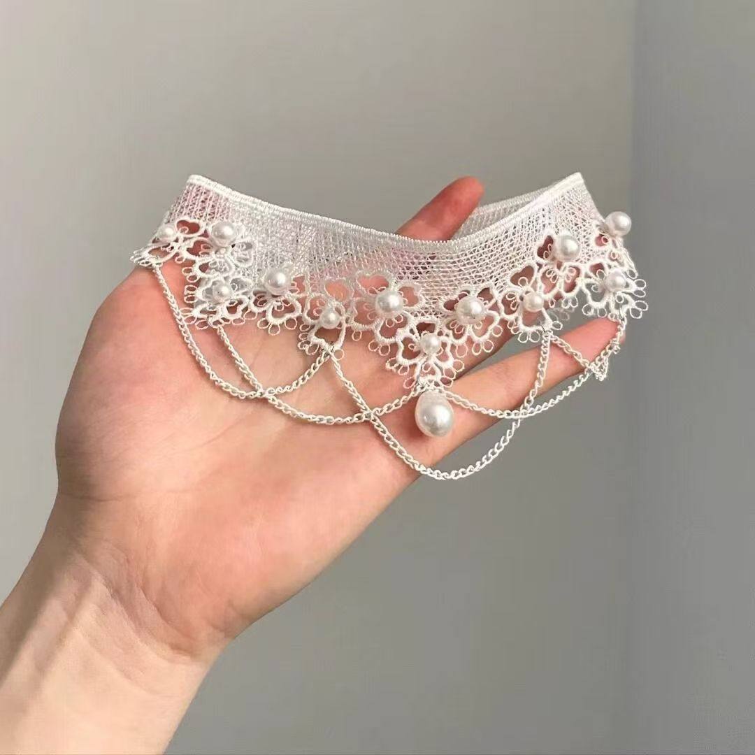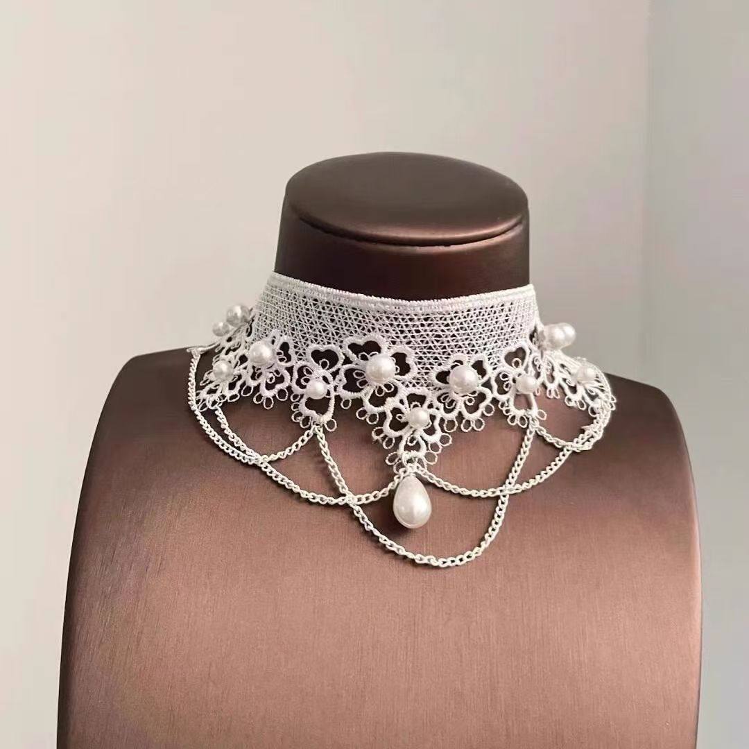 高级感蕾丝水滴流苏项链欧美风轻奢小众锁骨链2025新款choker颈链