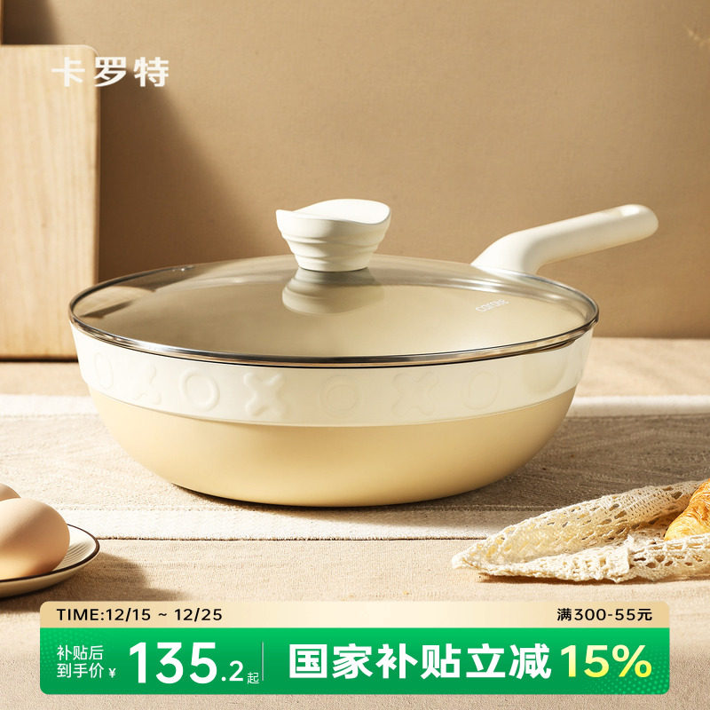 卡罗特不粘锅炒锅家用麦饭石炒菜锅平底不沾钛锅电磁炉燃气灶专用