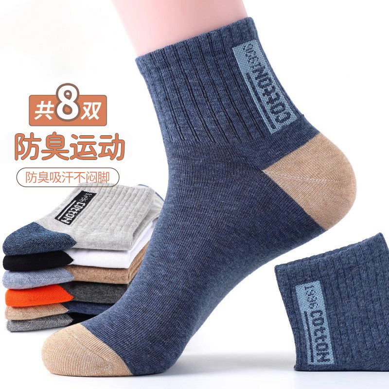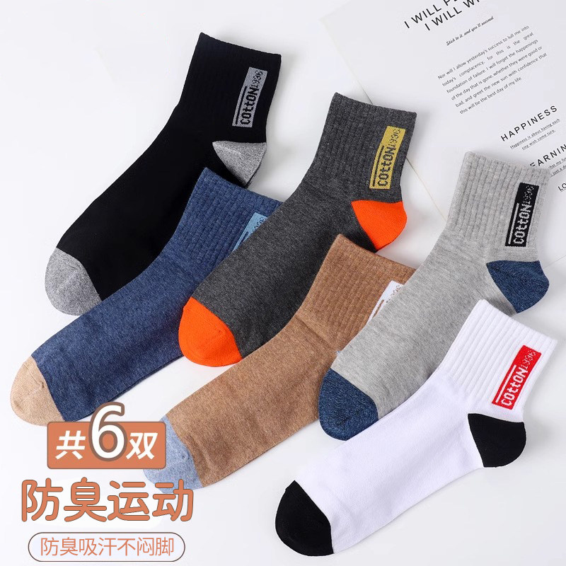 诸暨新疆棉袜子男士秋冬季潮款防臭中筒袜抑菌吸汗长袜运动青少年