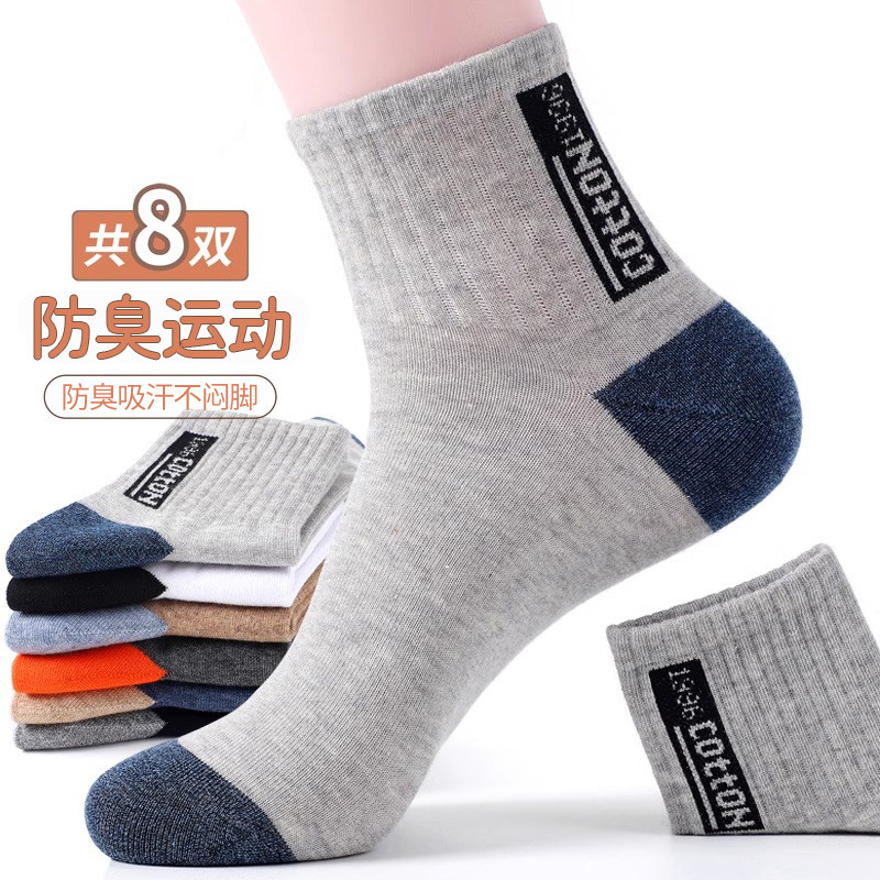 【50双装】秋冬袜子男款中筒袜潮流耐穿防滑运动防臭吸汗男士袜子