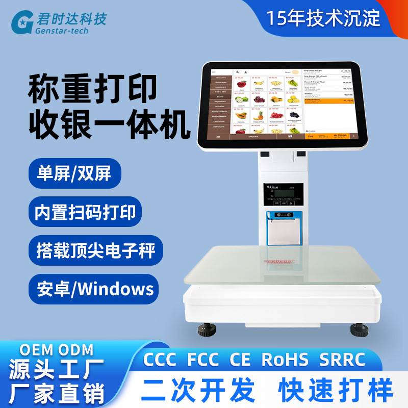 餐饮水果蔬菜生鲜零食超市触摸双屏秤收银机称重便利店单一体
