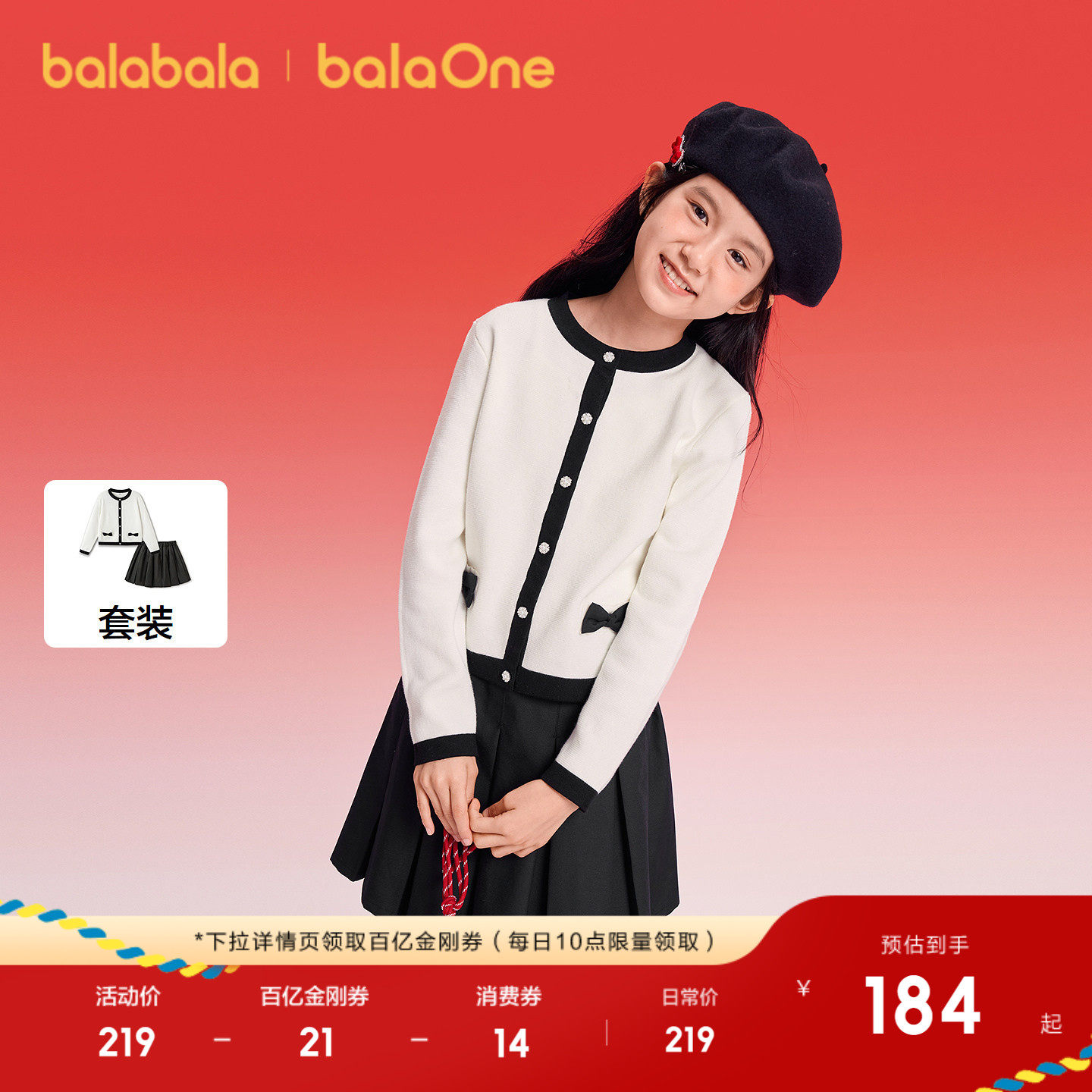 巴拉巴拉童装女童套装儿童长袖两件套2026春秋装拜年服百褶裙红色