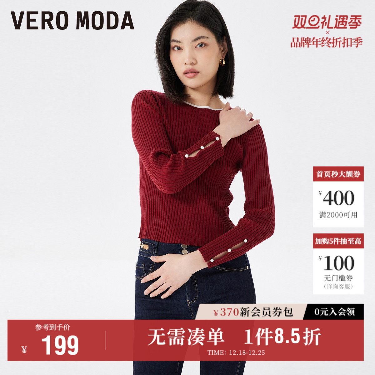 Vero Moda奥莱针织衫毛衣女秋冬清仓圆领修身长袖简约气质上衣