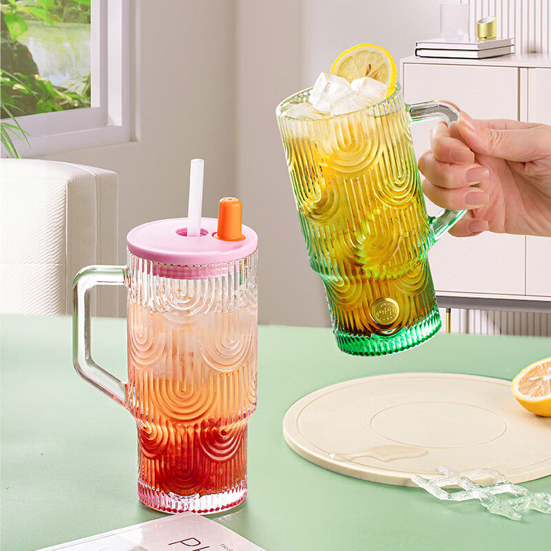 玻璃杯大容量1000ml高硼硅泡茶杯女办公室家用喝水杯子吸管杯新款