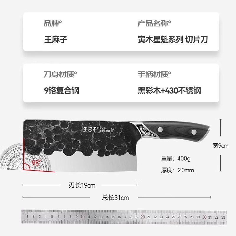 王麻子手工锻打菜刀家用厨房切菜片肉斩切两用刀具正品厨师专用刀