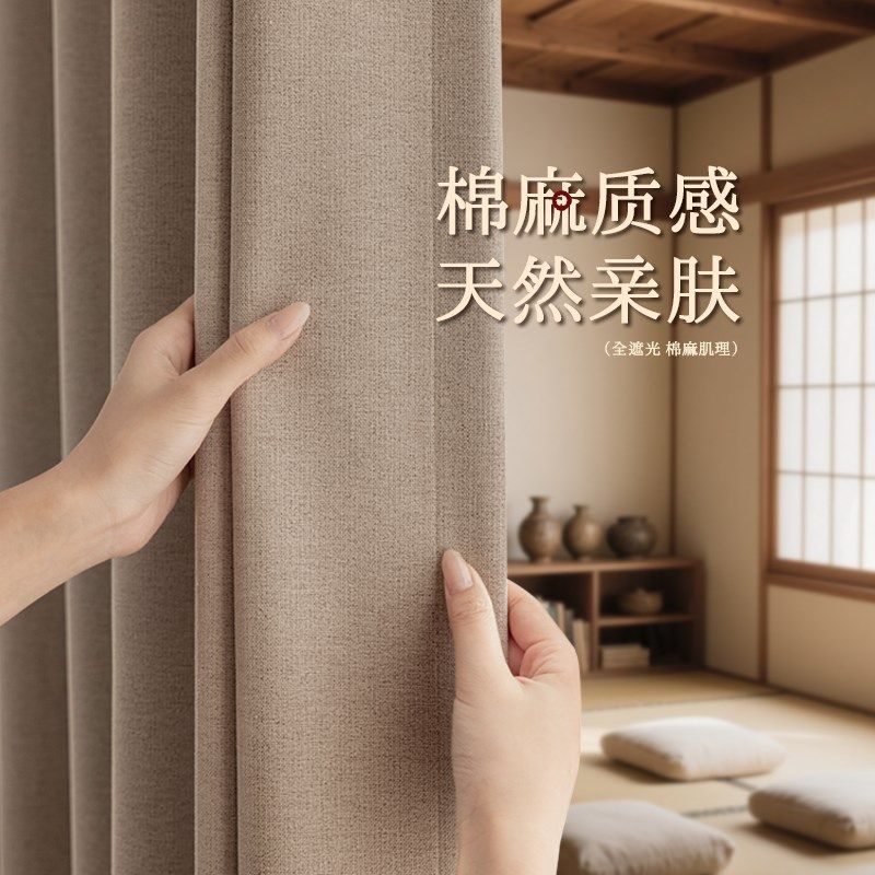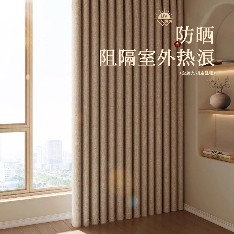窗帘布全遮光卧室强隔音免打孔安装2025新款高级感防晒遮阳帘轻奢