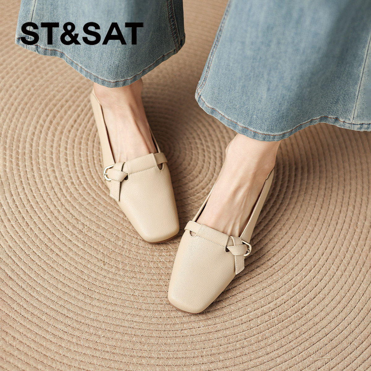 星期六平底单鞋女款春季新款法式羊皮鞋女真皮软不累脚瓢鞋子