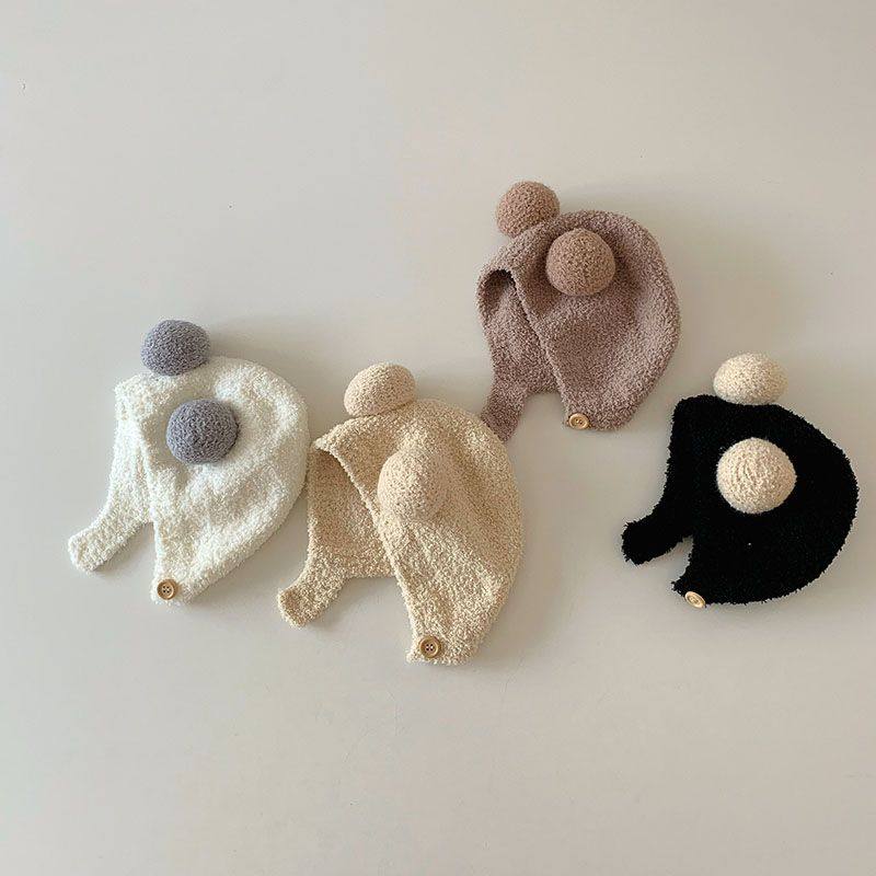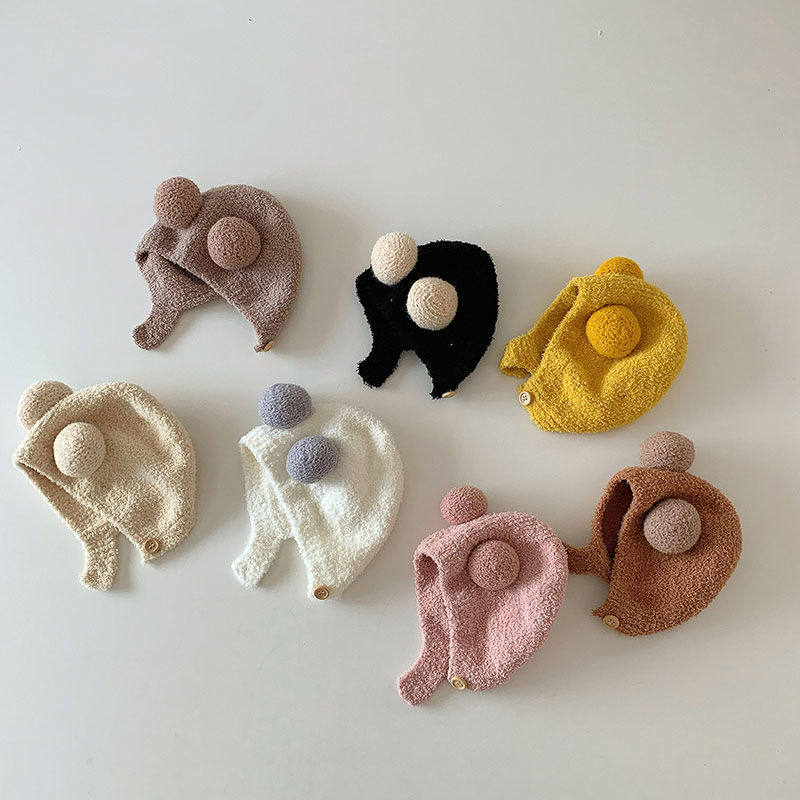 尼多熊婴儿帽子秋围脖一体宝宝毛绒帽防风护耳帽冬季保暖婴幼儿帽