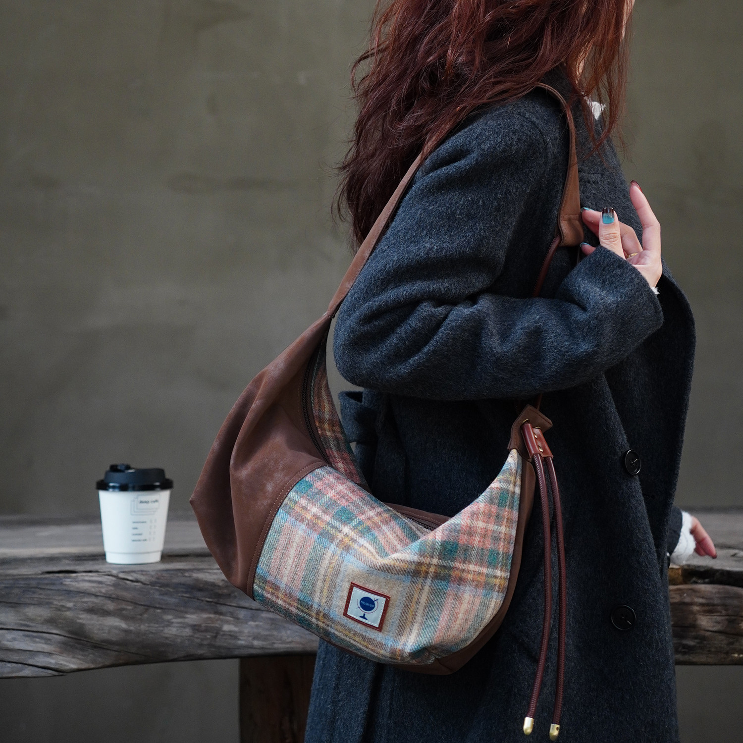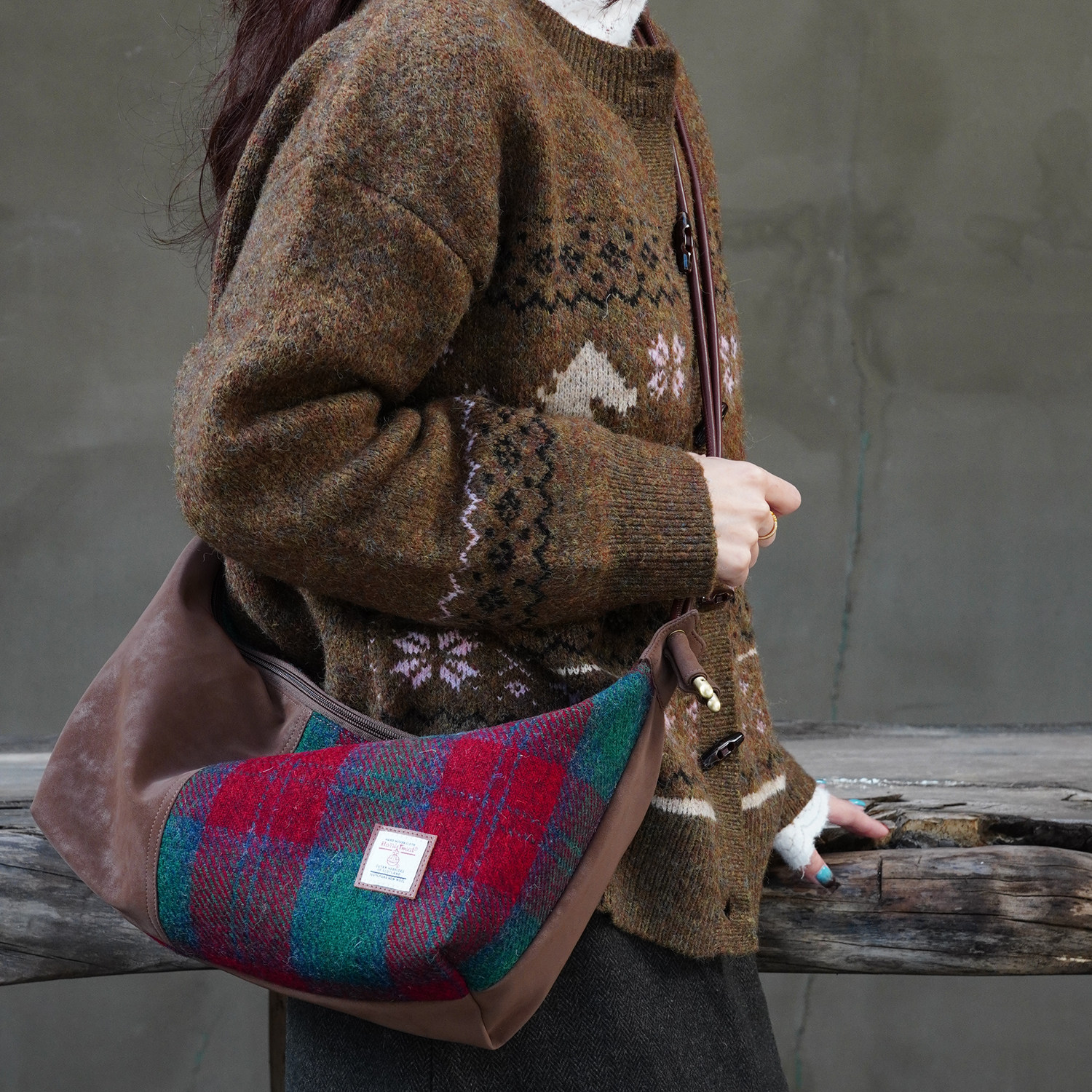 Harris tweed哈里斯粗花呢单肩斜挎包格子包轻通勤百搭腋下托特包