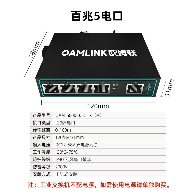 【真工业】oamlink欧姆联工业交换机5口百兆导轨式以太网非管理型网络分流器电力监控交通轨道工业交换器
