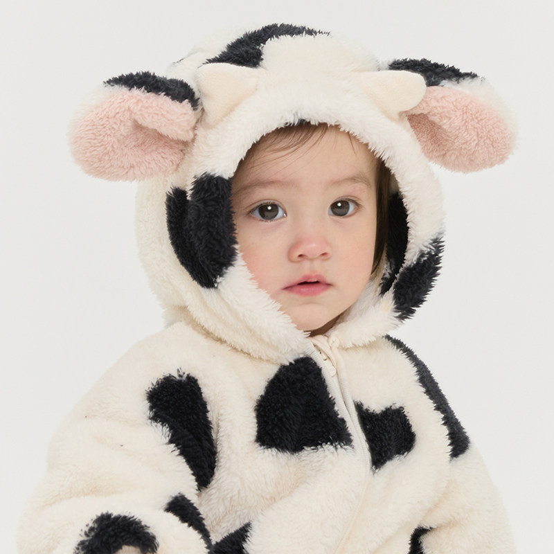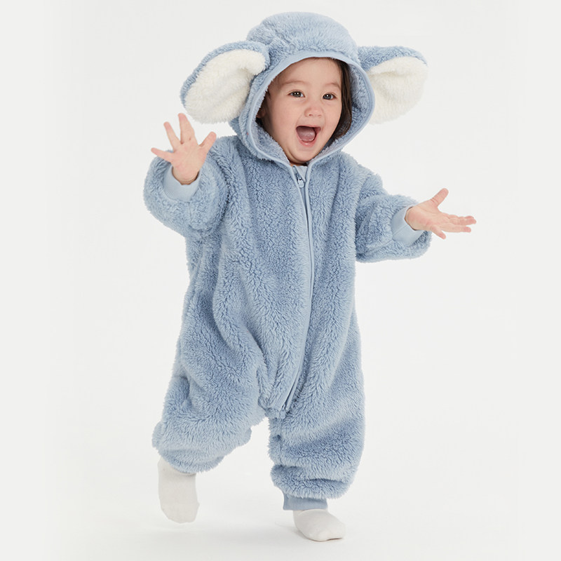 小猪大卫新生儿秋冬夹棉连体衣男女宝宝卡通印花中开保暖爬服
