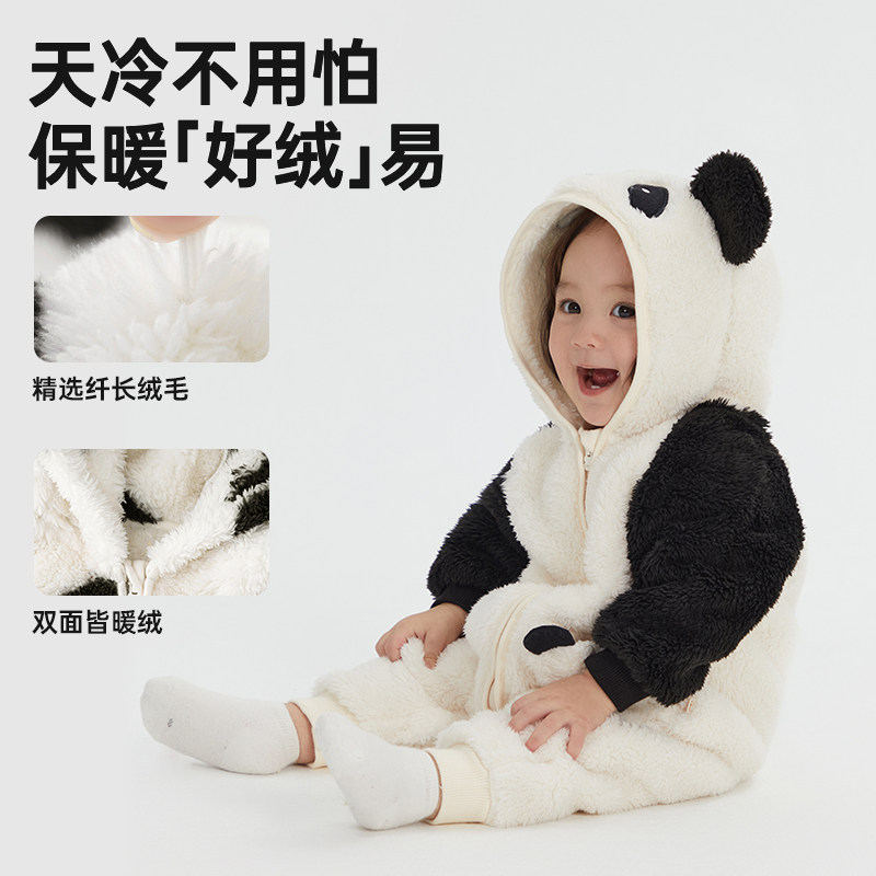 婧麒婴儿衣服秋冬德绒连体衣男女宝宝发热保暖新生儿打底睡衣冬款