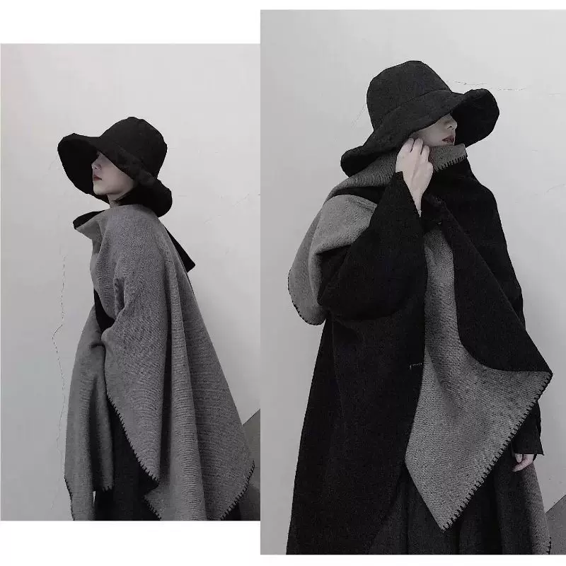 北欧风羊绒扎染黑白双面披肩装饰围巾简约斗篷保暖加厚披肩冬秋