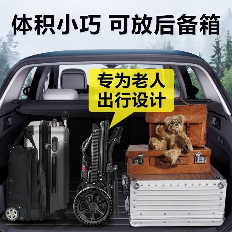 跨境出口合规老人轮椅座椅折叠轻便小型便携式旅行代步手推车