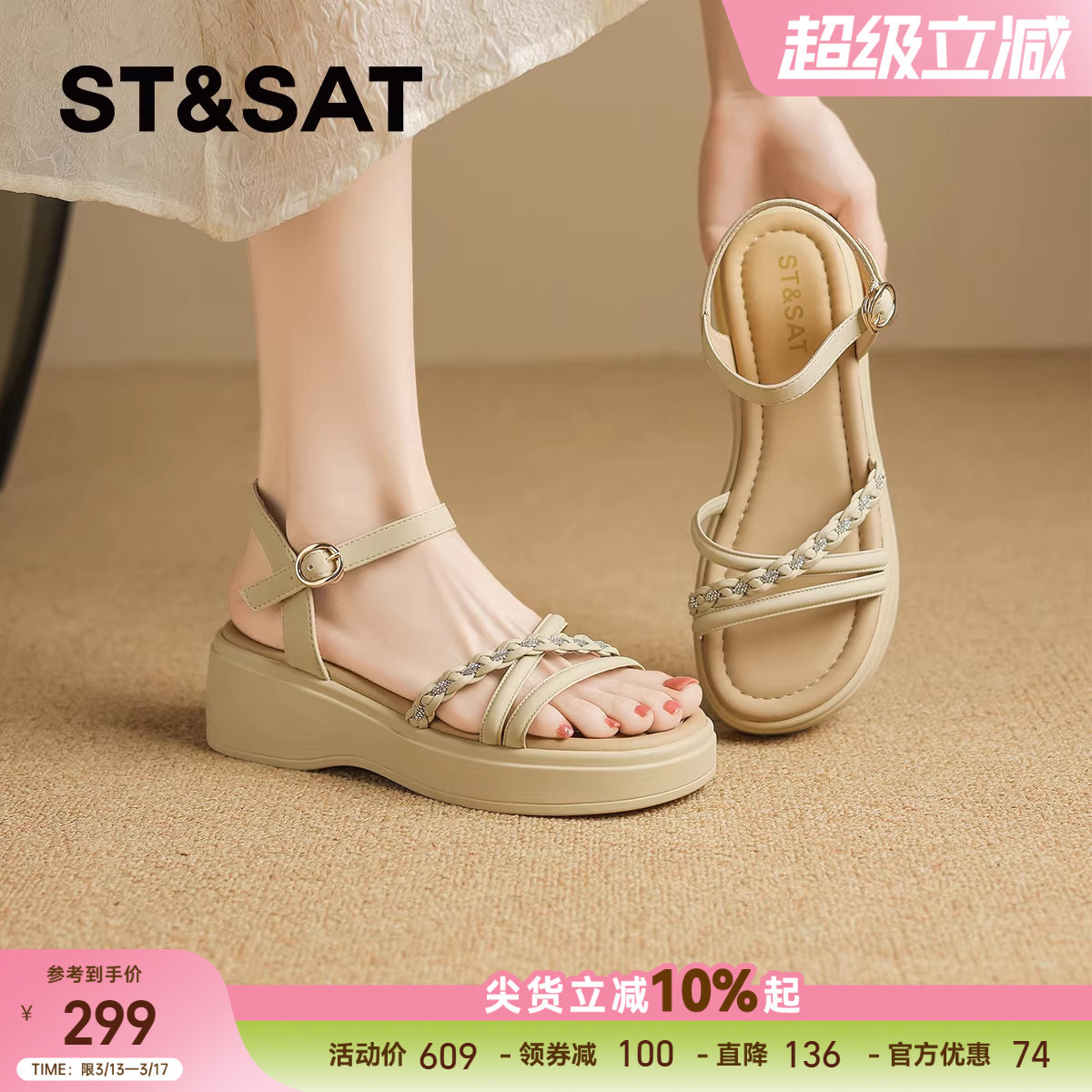 星期六仙女风时尚凉鞋女2025年夏季新款休闲一字扣配裙子罗马凉鞋