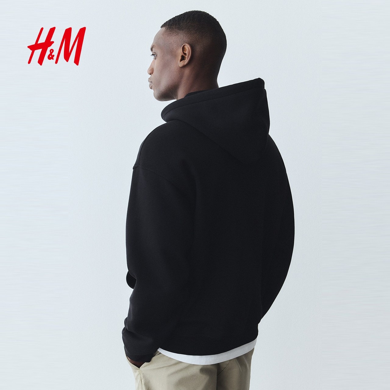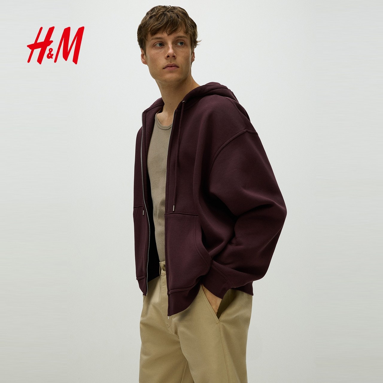 HM男装女装卫衣冬季新款情侣装梅红色拉链连帽外套开衫1308010